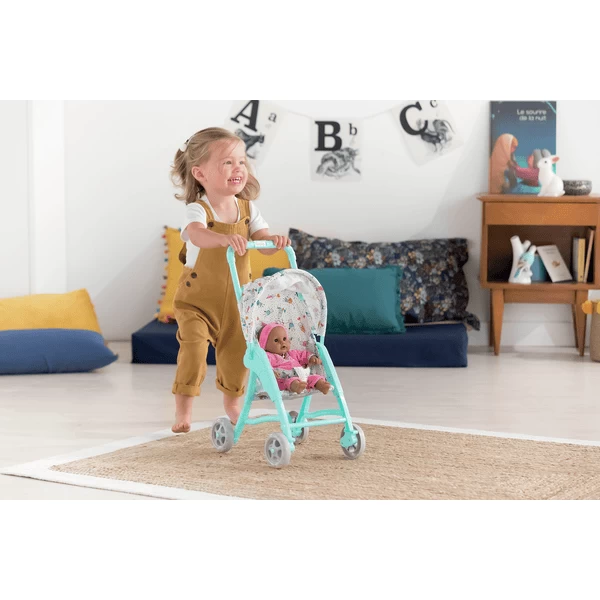 Het is perfect om babypoppen van 30 cm mee te nemen voor wandelingen. Zet je pop in de poppenbuggy, doe de riem om en rijden maar!