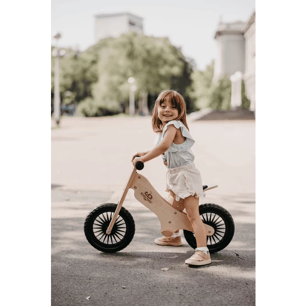 De hoogwaardige handgemaakte bamboe duwfiets is voorzien van een voetsteun. De