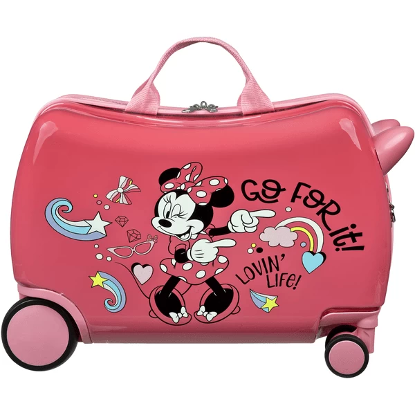 De kinderen kunnen op het wagentje zitten, zich aan de handgrepen vasthouden en het tijdens de wachttijd als schuifwagentje gebruiken. De twee 360° wielen maken de trolley bijzonder flexibel en garanderen glijplezier aan alle kanten. Bovendien biedt de trolley veel ruimte voor speelgoed en andere reisbenodigdheden dankzij de praktische indeling met ritsvak en dwarsbanden. De trolley kan comfortabel worden gedragen met de afneembare schouderriem. De koffer kan ook als handbagage worden meegenomen.