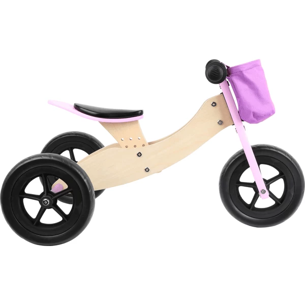 Voor beginners is de veilige, driewielige versie met twee achterwielen ideaal – als het leerproces en de balans het toelaten, wordt het omgebouwd tot een klassiek wiel! Het stuur met stuurslotbegrenzer biedt een pluspunt in veiligheid! Favoriete speeltjes & co. vinden plaats in de afneembare stuurtas. Rubberen grepen, onverwoestbare EVA zachte banden en het zachte zadel zorgen voor rijcomfort.