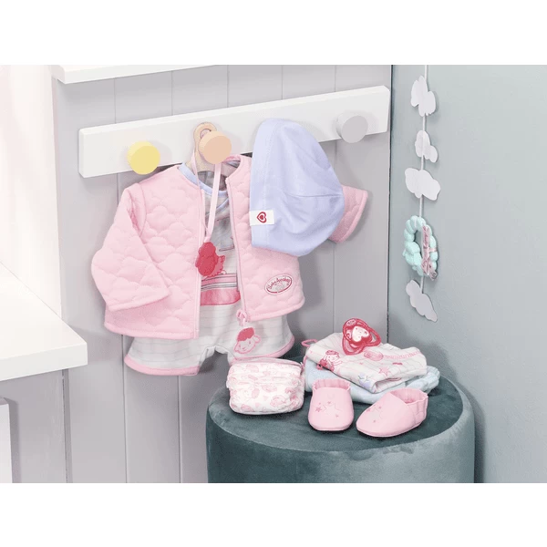 - Baby Annabell Combi Set: jasje, shirt, broek, lichaam, schoenen, pet, fopspeen, bijtring, luier, doosje