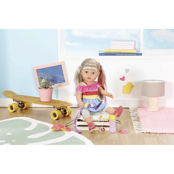 Zus is super mobiel en kan op zichzelf staan dankzij haar soepele kniegewrichten. En ze kan in bad in de BABY born badkuip.